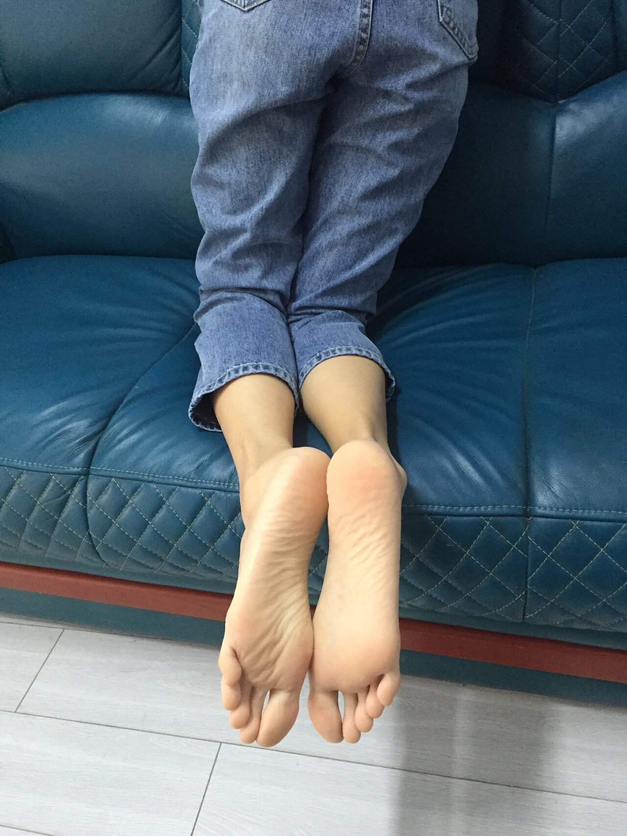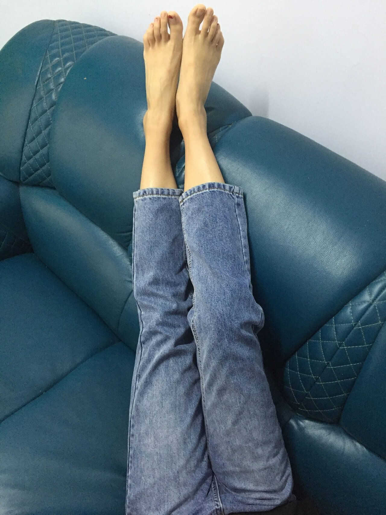 本足摄影 约牛仔裤美脚裸足女大学生把玩玉足 足交