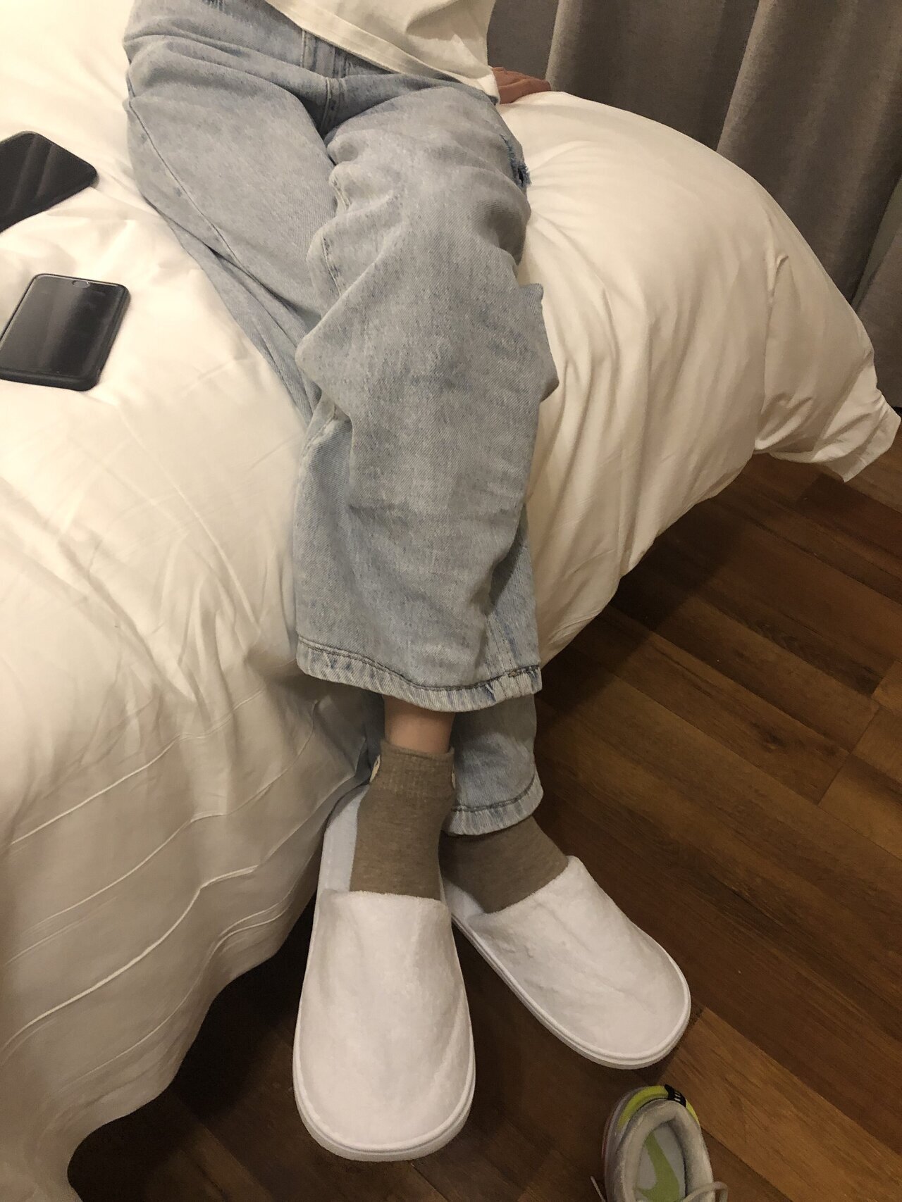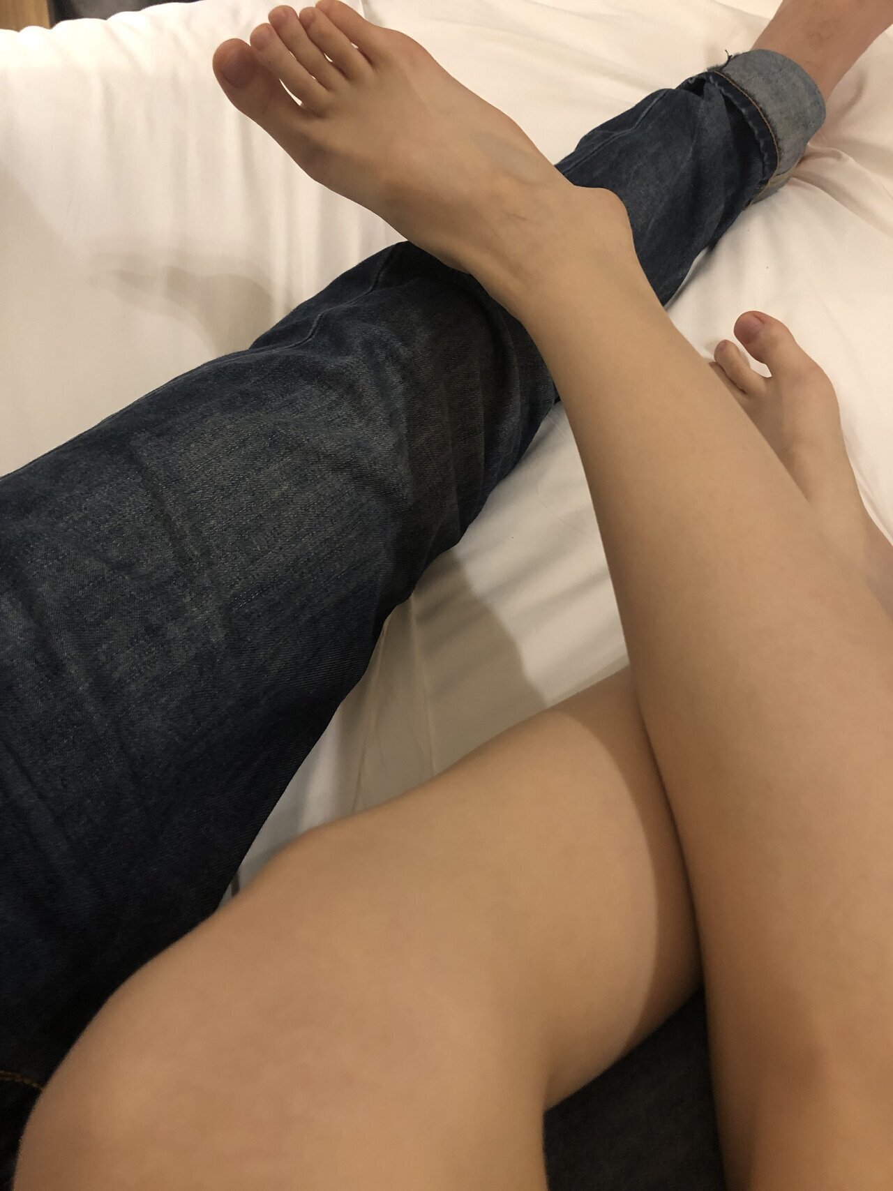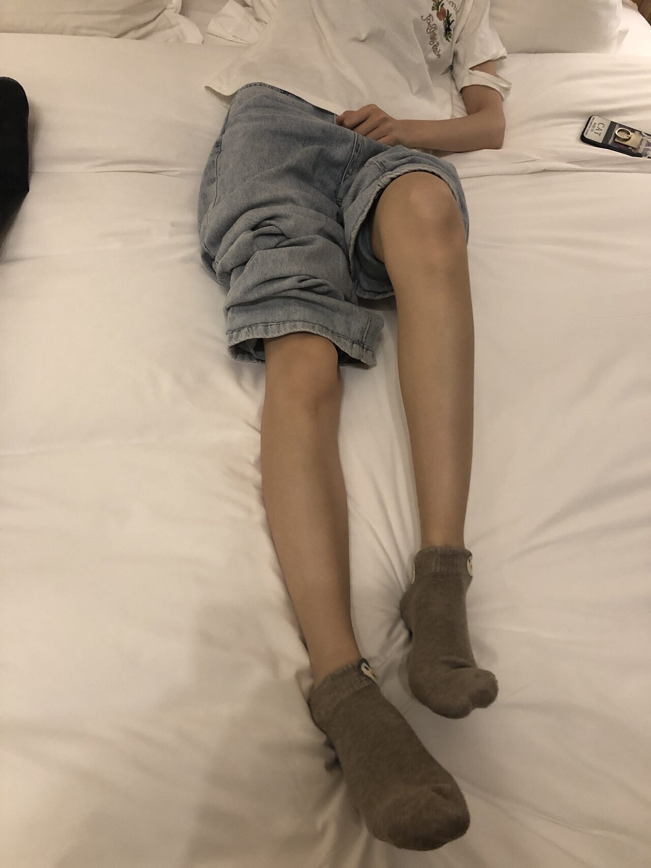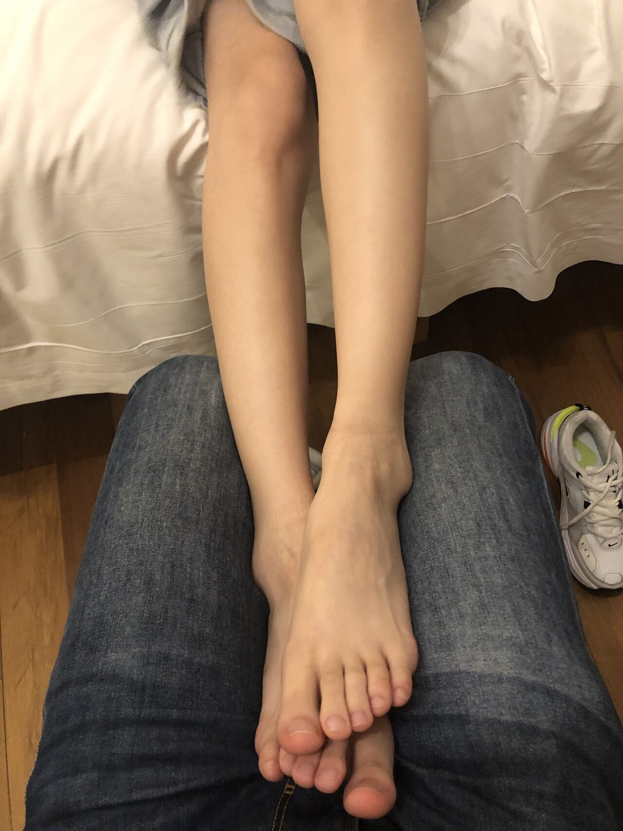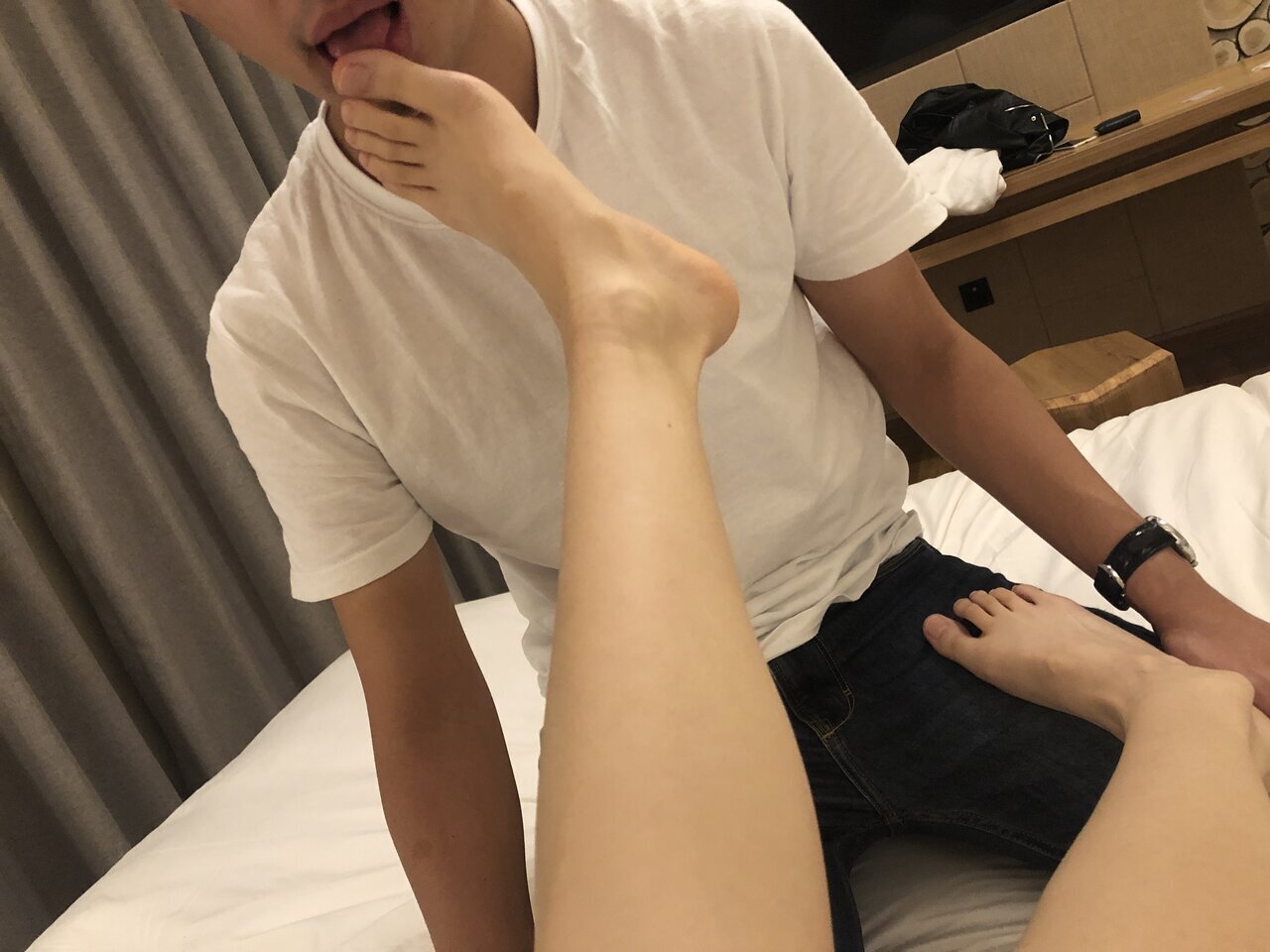 本足摄影 约牛仔裤灰棉袜运动鞋大一学妹酒店把玩玉足美脚 舔脚