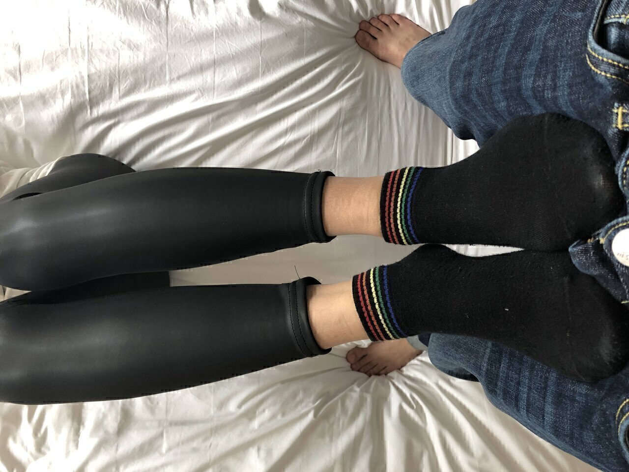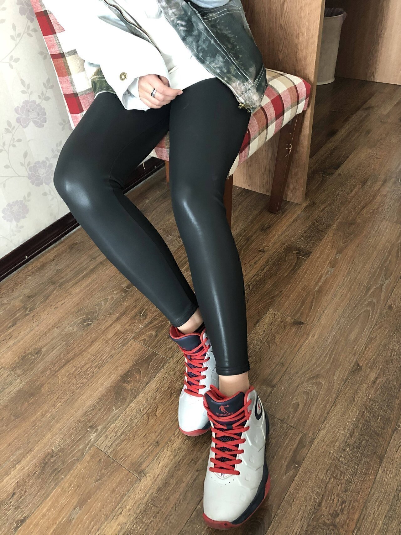 本足摄影 约皮裤黑棉袜篮球鞋女大学生把玩玉足美脚 足交射脚
