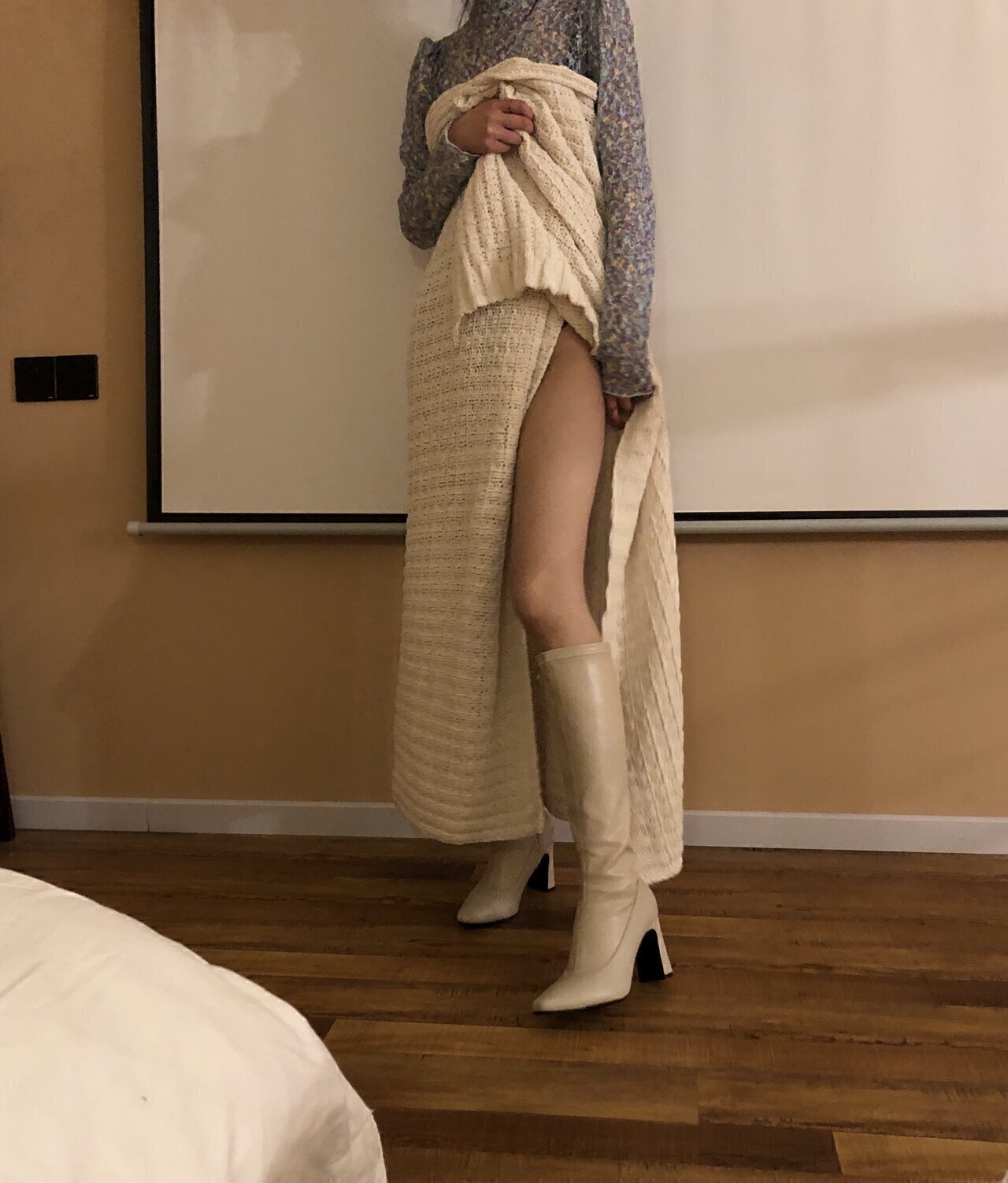 附自拍照,长的很漂亮,穿的白色高跟长筒皮靴和白棉袜来的,脱下她的靴子闻白棉袜,味道有点重,感觉正好,忍不住把她的脚丫放在嘴巴细细的品尝